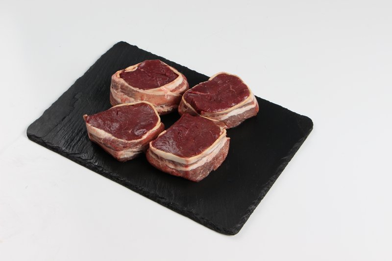 Oksetykstegsbøffer, m/bacon, 4x150 g,