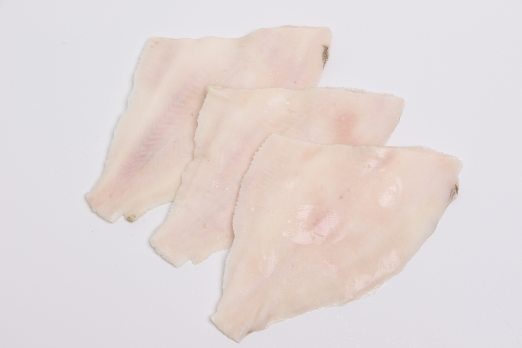 Enkeltfrosne rødspættefileter, naturel, ½, uden mørkt skind. 50-80 gram.