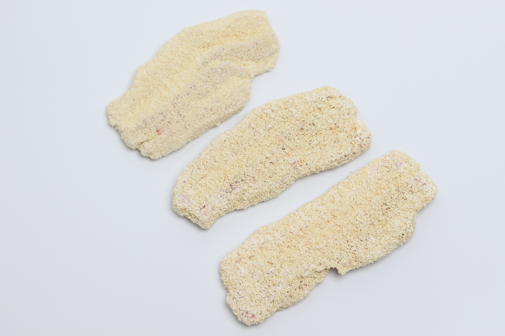 Brystflæsk, rasp (HVEDEMEL, salt, gær), vand, battermix (HVEDEMEL, kartoffelstivelse, modificeret majsstivelse (E1412), dextrose, HVEDEprotein).