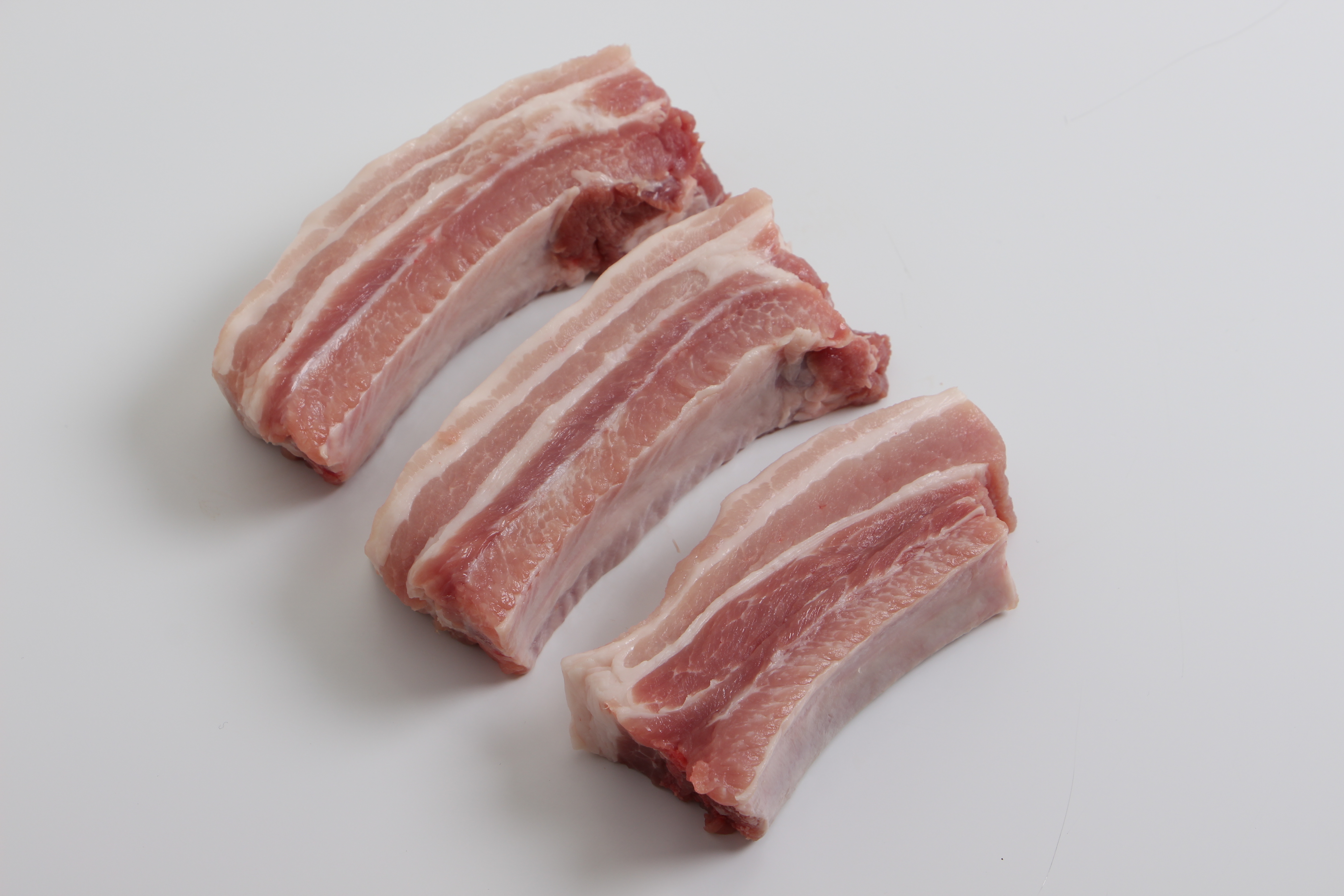 Kødfulde stykker af brystflæsk med ben.