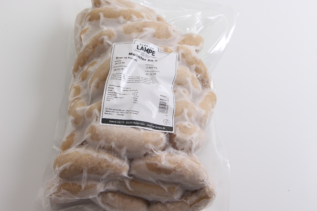 Svinekød 71%, vand, oksekød 7%, ærteprotein, salt, kartoffelmel, løg, krydderier, stabilisator (E450), dextrose, gærekstrakter, smagsforstærker (E621), krydderiekstrakt, svinetarm.