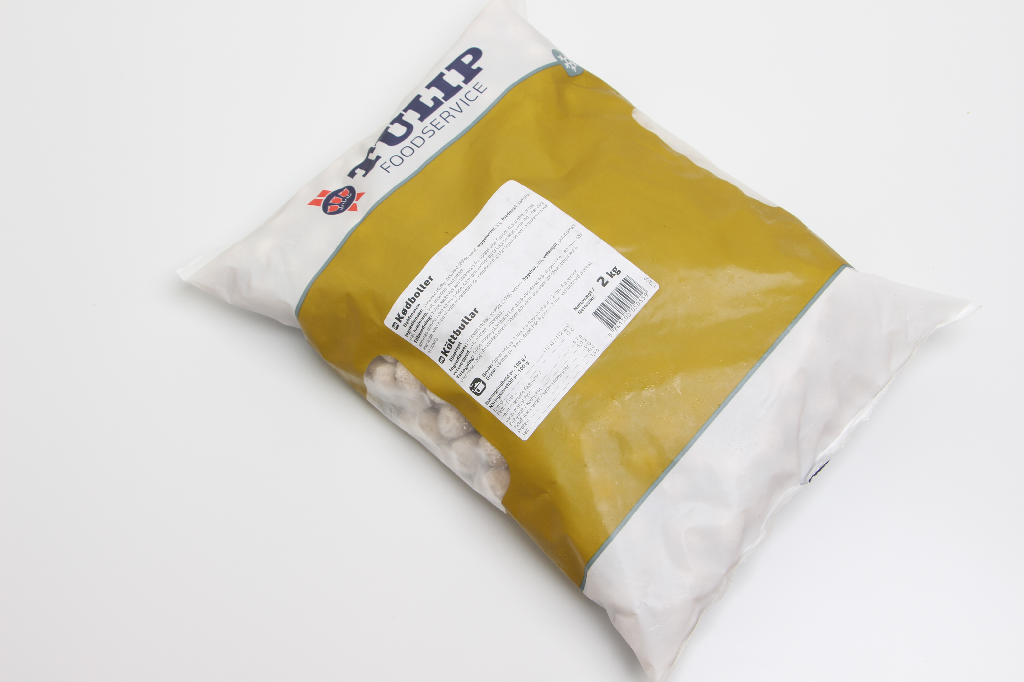 Grisekød (40%), oksekød (20%), vand, ÆGGEHVIDER, løg, HVEDEMEL, kartoffelmel, rasp (HVEDEMEL, salt, gær), salt, oksefedt, hvid peber.
