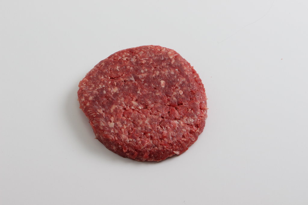 Flade, formede bøffer af hakket oksekød med 10 % fedt, tilsat 10 % kartoffel.