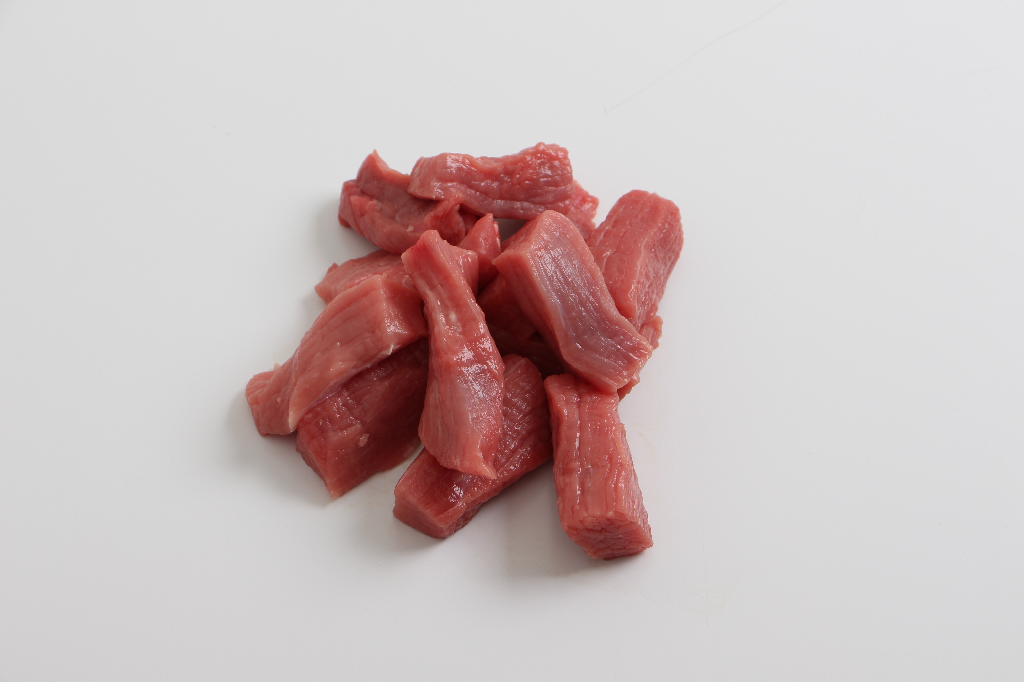 Yderlår fra dansk Z-kalv, skåret i wok-strimler.