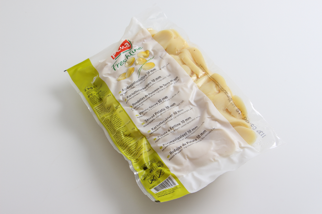 Kartoffelskiver klar til anvendelse.