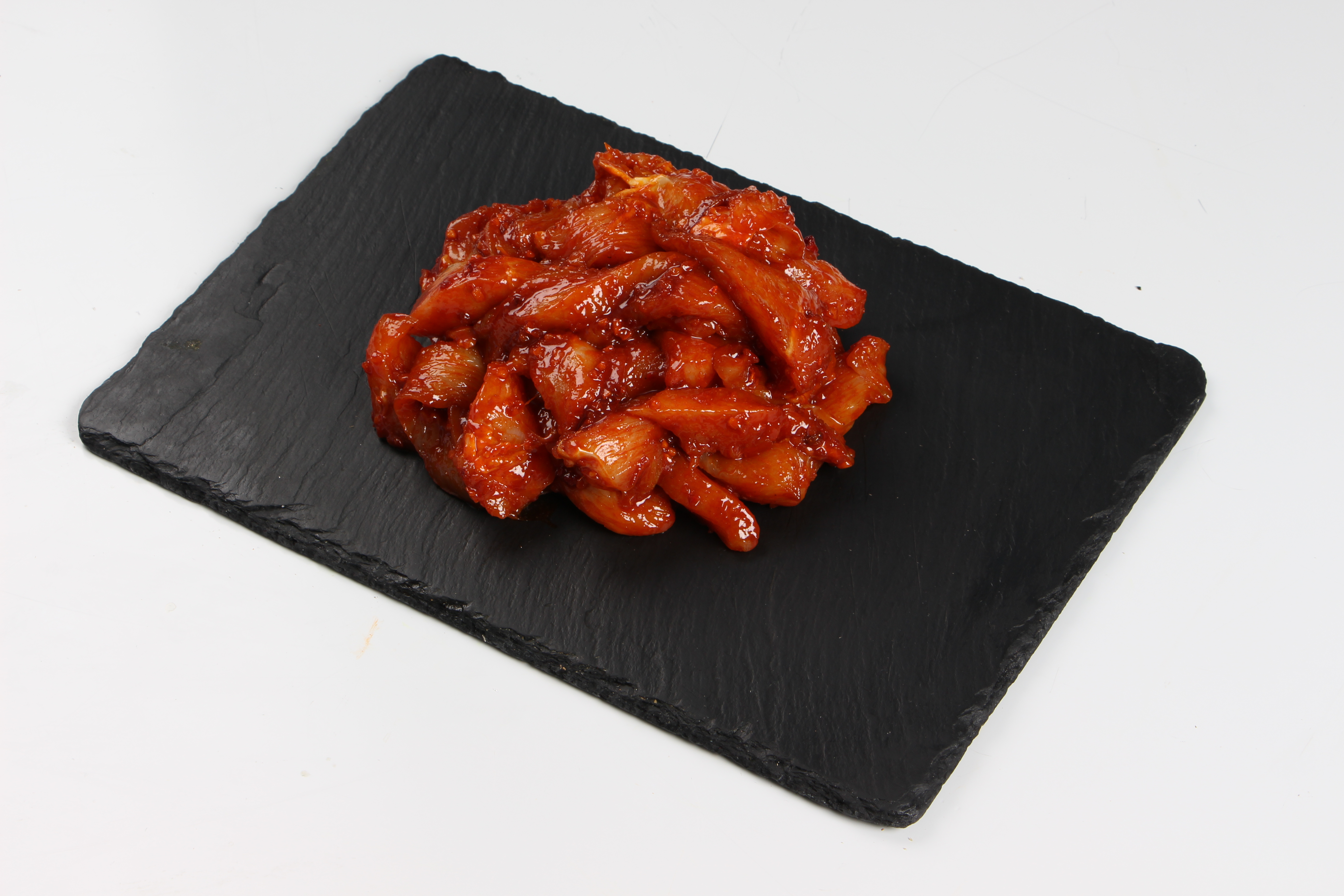 Kylling tilsat marinade: (Vegetabilsk olie (raps, delvis hærdet,) krydderier (løg, hvidløg, spidskommen, paprika, chili), salt, dextrose, tomatpulver, gærekstrakt, krydderiekstrakter (paprika, hvidløg)).