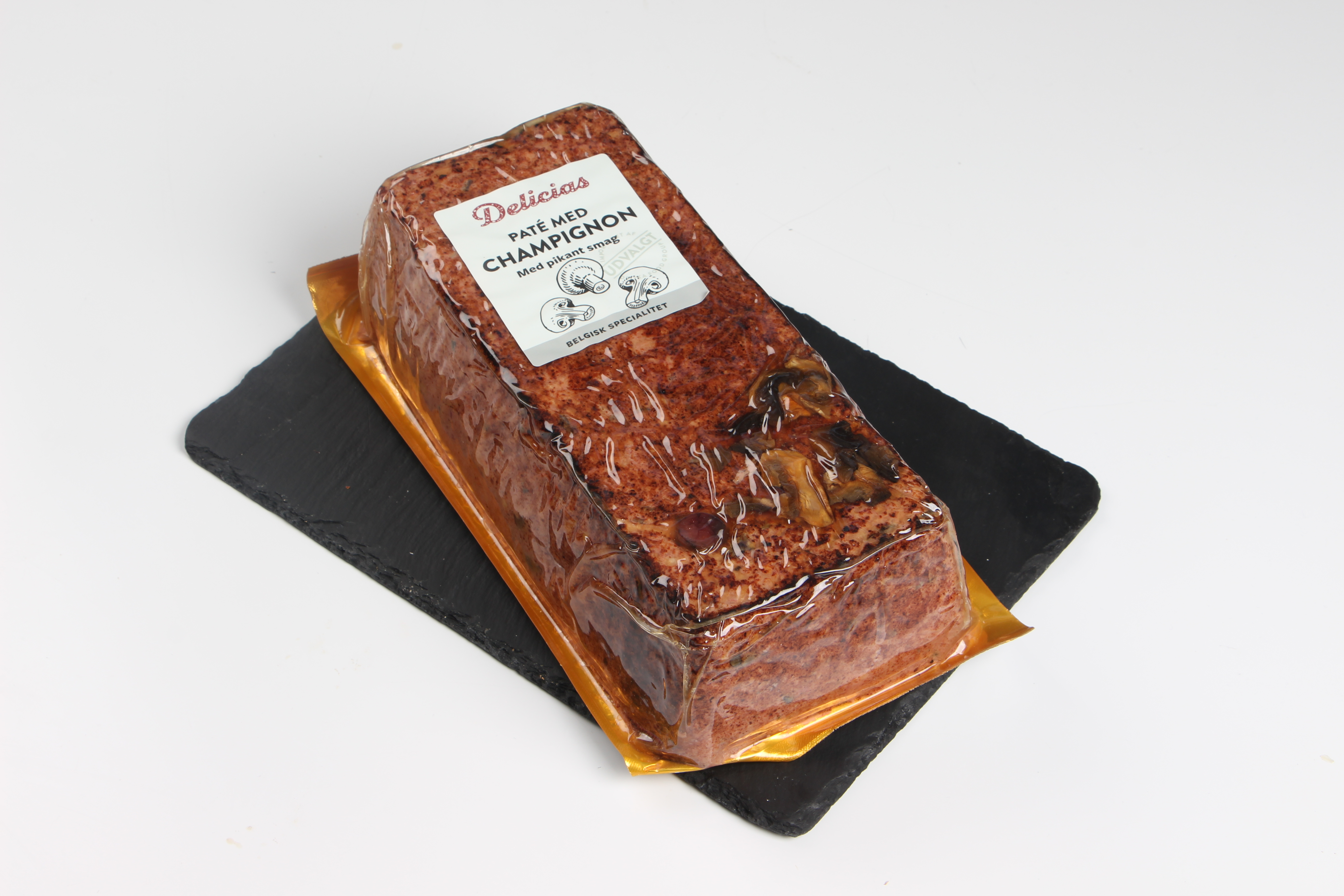 Svinelever 33%, kyllingefedt, kyllingekød 21%, champignon 8% (Agaricus Bisporus), kartoffelstivelse, salt, emulgator (E472c), antioxidanter (E301, E326, E330), MÆLKEPROTEIN, løg, dextrose, tomater, krydderier, stabilisatorer (E450, E452), gærekstrakt, rismel, konserveringsmidler (E250, E261), svinegelatine.