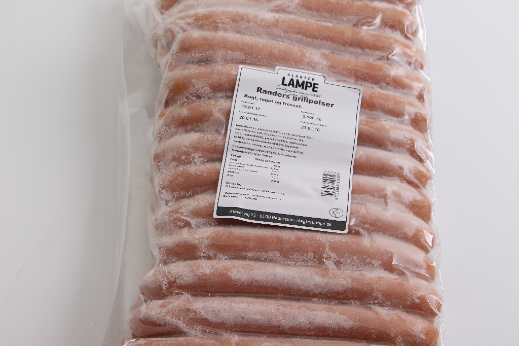 Svinekød 64%, vand, oksekød 13%, kartoffelmel, salt, krydderier, dextrose, løg, stabilisator ﴾E450﴿, gærekstrakter, antioxidant ﴾E301﴿, smagsforstærker ﴾E621﴿, krydderiekstrakter, aroma, maltodextrin, syre ﴾E330﴿, konserveringsmiddel ﴾E250﴿, lammetarm