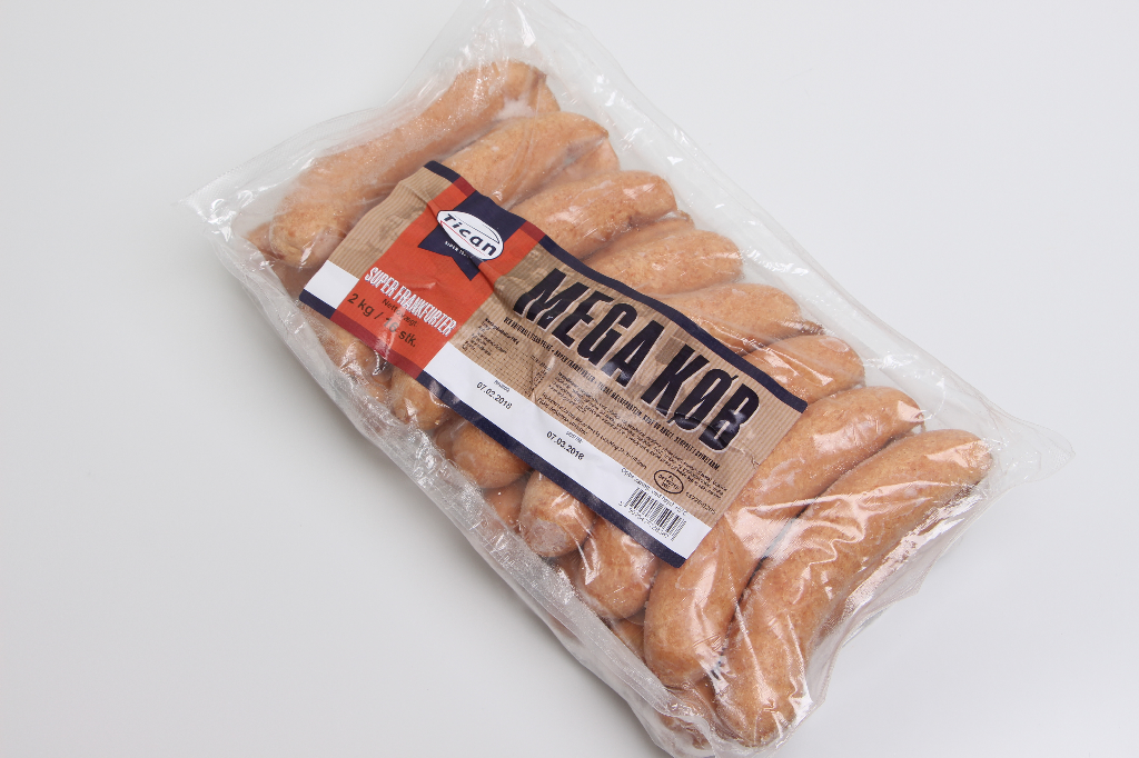 Svinekød 67%, vand, svinefedt, salt, kartoffelmel, modificeret stivelse, kaseinat (af MÆLK), krydderier (indeholder SELLERI), vallepulver (af MÆLK), glucosesirup, stabilisator (E450), krydderi - og grøntsagsekstrakter, hvidløg, smagsforstaeker (E621), gӕrekstrakt, antioxidant (E301), hydrolyseret vegetabilsk protein (af HVEDE, BYG og SOJA), dextrose, konserveringsmiddel (E250).