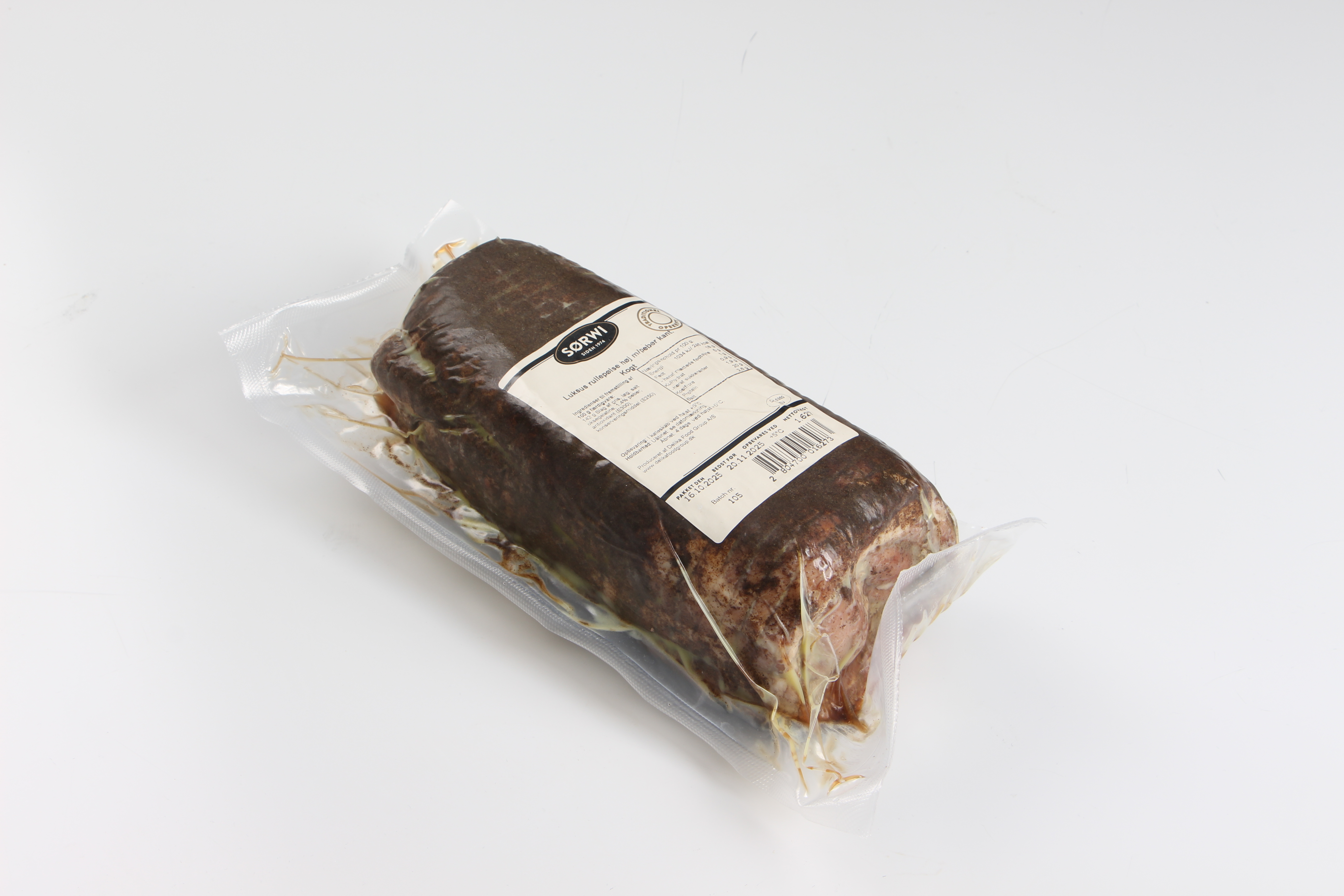 Til 100 g færdigvare: Svineslag 142 g, løg, oksegelatine, salt, peber, antioxidant E300, konserveringsmiddel E250. Røget og kogt.