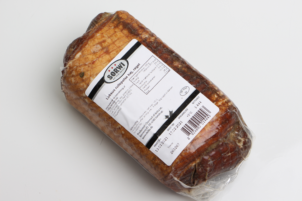 Til 100 g færdigvare: Svineslag 142 g, løg, oksegelatine, salt, peber, antioxidant E300, konserveringsmiddel E250. Røget og kogt.