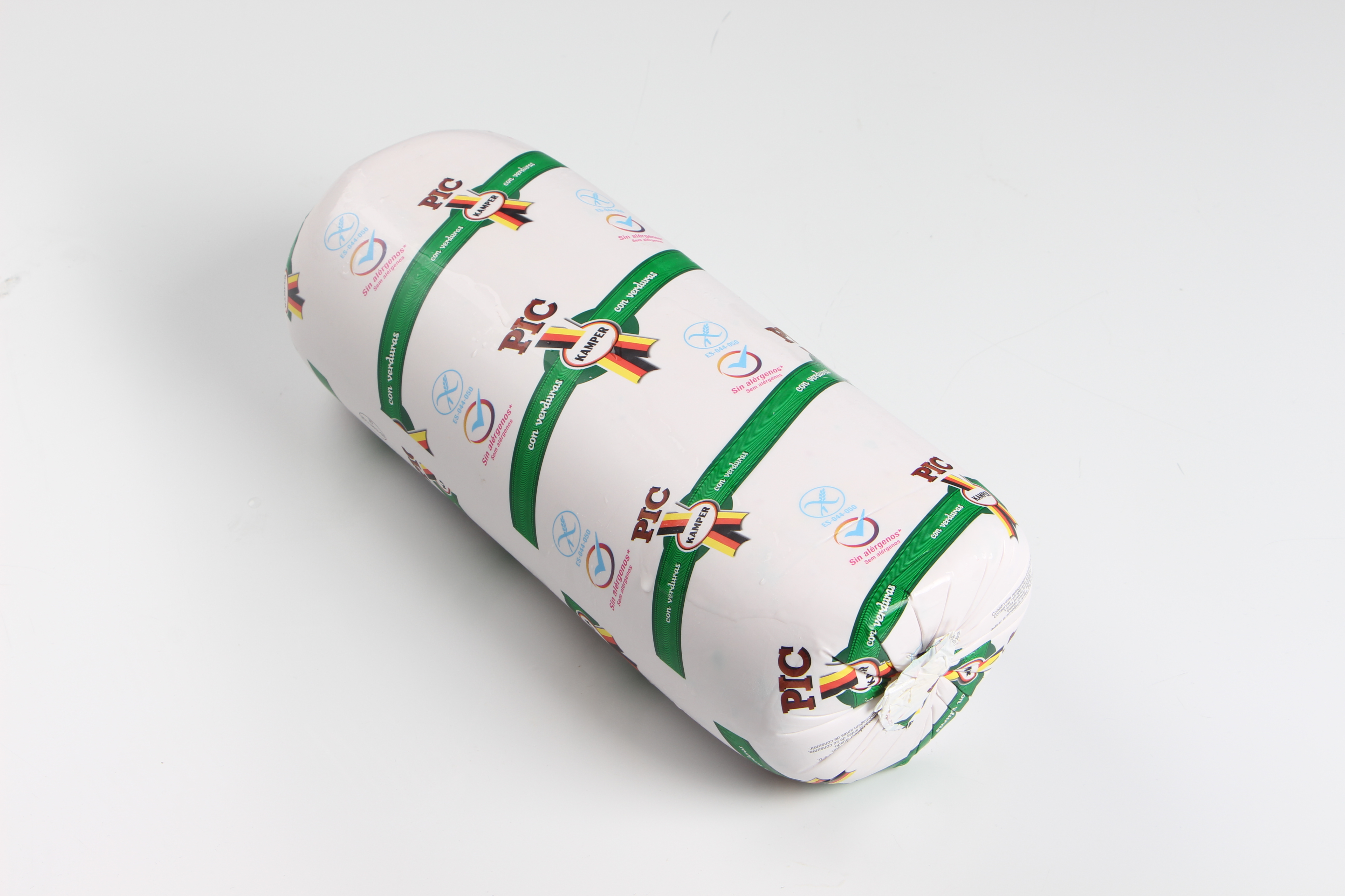 Svinekød (56%), vand, stivelse, oliven (4,7%), gulerod (3%), svinekødsprotein, salt, krydderekstrakt, sukker, smagsstoffer, stabilisatorer (E451, E410, E412), krydderier, antioxidant (E316), konserveringsmidler (E250).