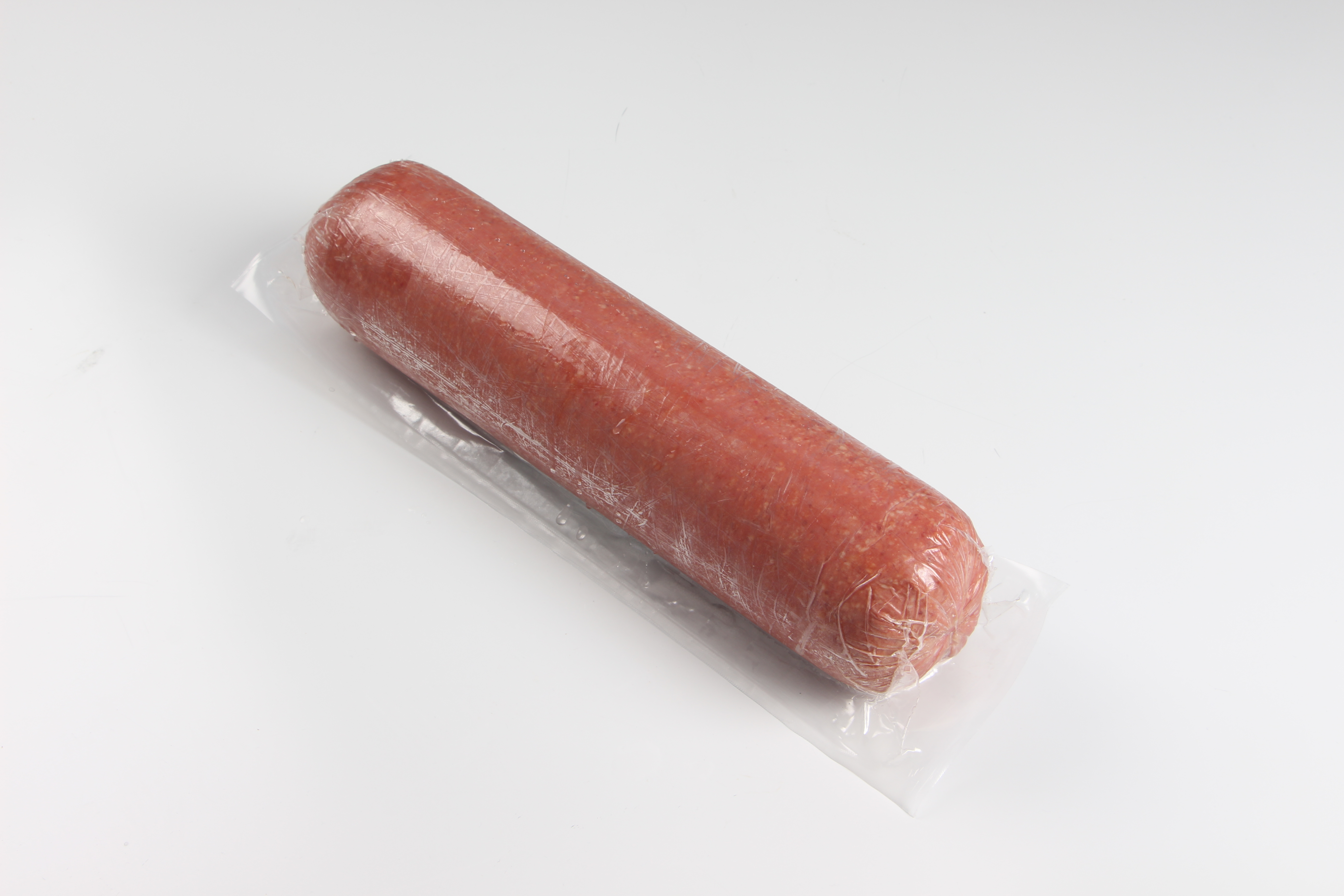 Svinekød 44%, oksekød 38%, spæk, salt, kartoffelstivelse, surhedsregulerende middel E575, krydderier (hvidløg, peber), vegetabilsk protein, dextrose, gærekstrakt, antioxidant E301, farve E120, konserveringsmiddel E250. Tarmen kan ikke spises. Tørret og røget.