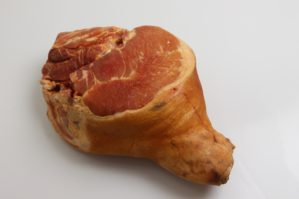 Saltet og røget, hel skinke med ben.