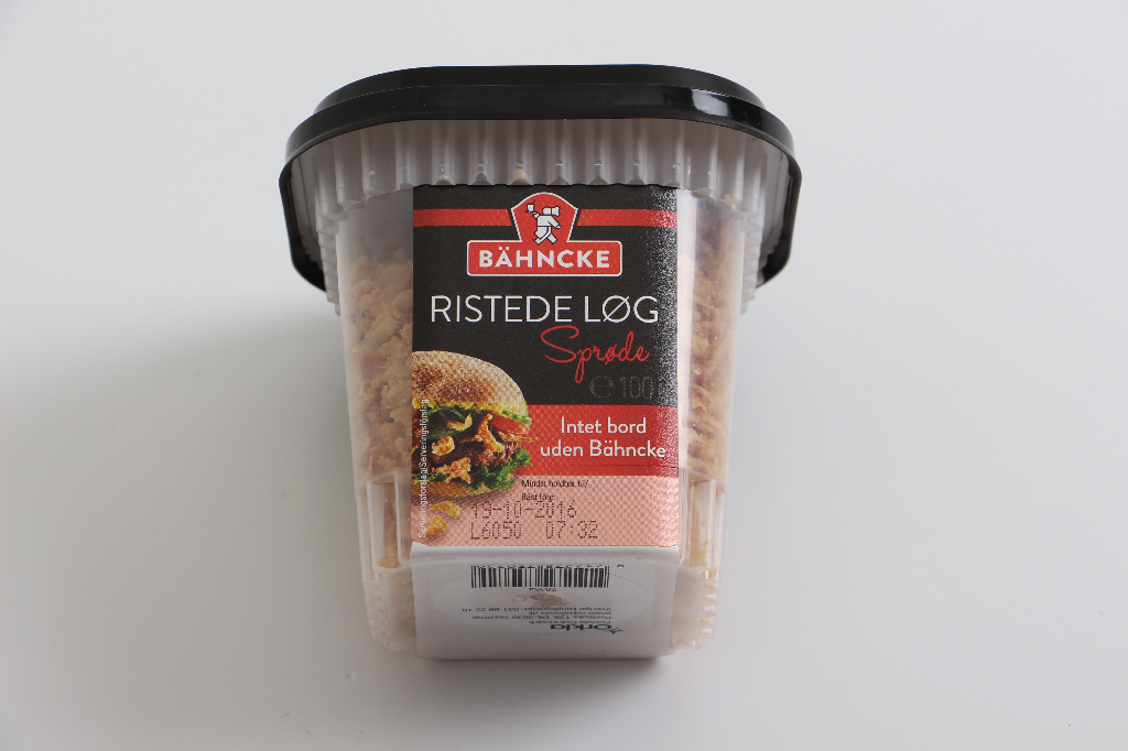 Ristede løg i bæger a 100 gram.