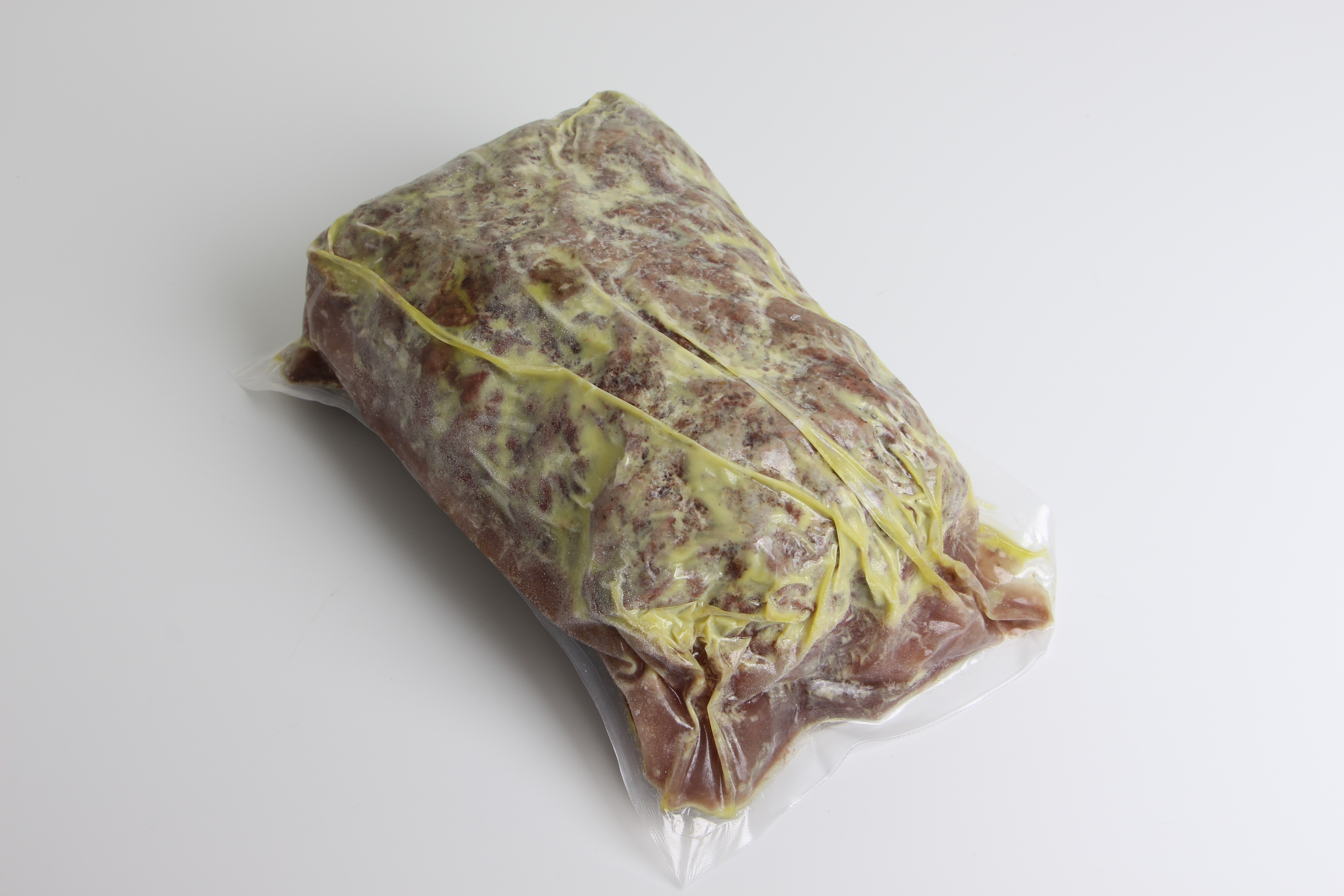 Flanksteak tilsat marinade: (Vegetabilsk olie (raps, delvis hærdet), krydderier (hvidløg 4,5%, paprika, persille, chili, oregano, peber, løvstikke, timian), salt, krydderiekstrakter (paprika, hvidløg)).