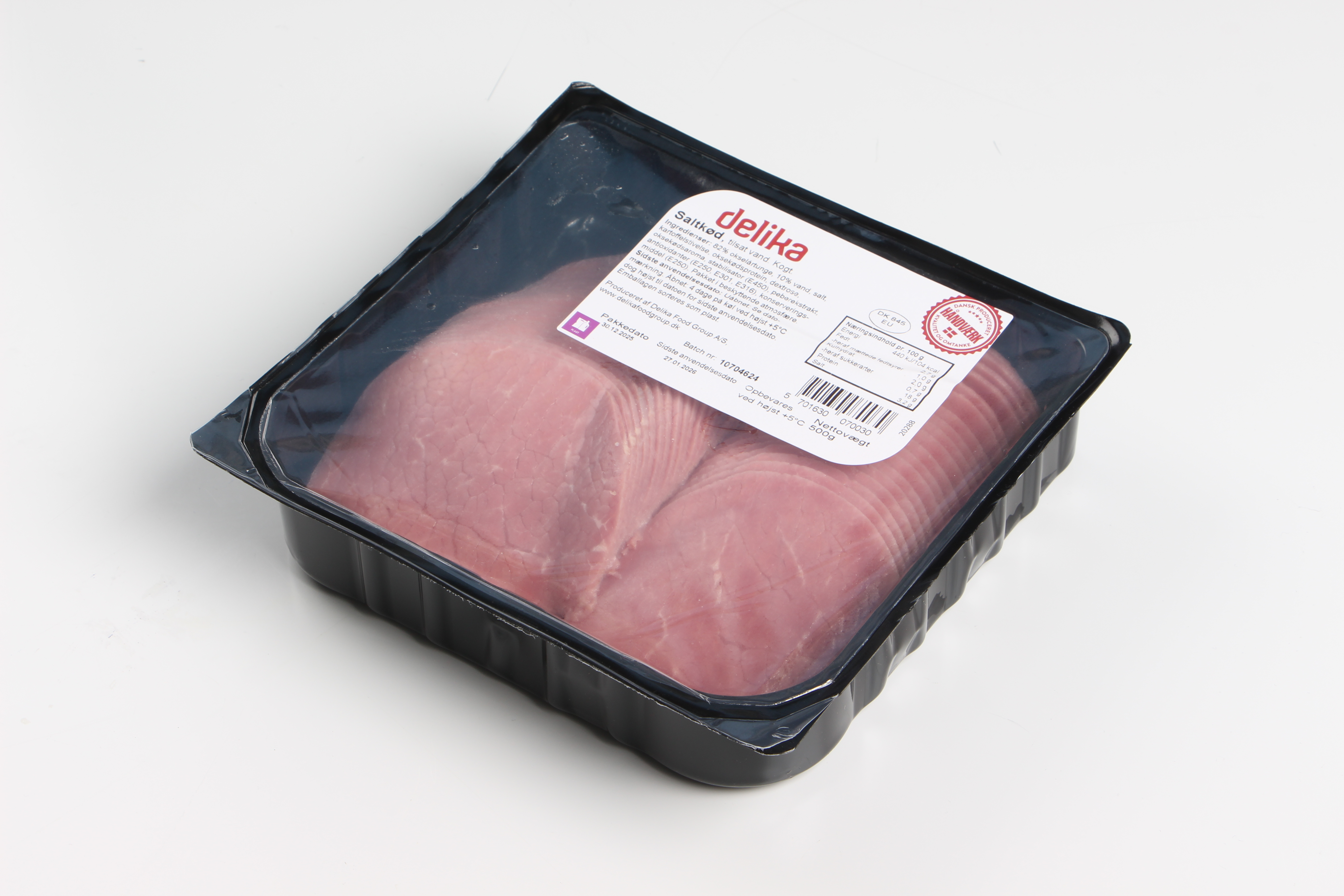Okselårtunge 82%, vand 10%, salt, kartoffelstivelse, oksekødsprotein, dextrose, oksekødsaroma, stabilisator E450, peberekstrakt, antioxidanter E250, E301, E316, konserveringsmiddel E250. Pakket i beskyttende atmosfære.