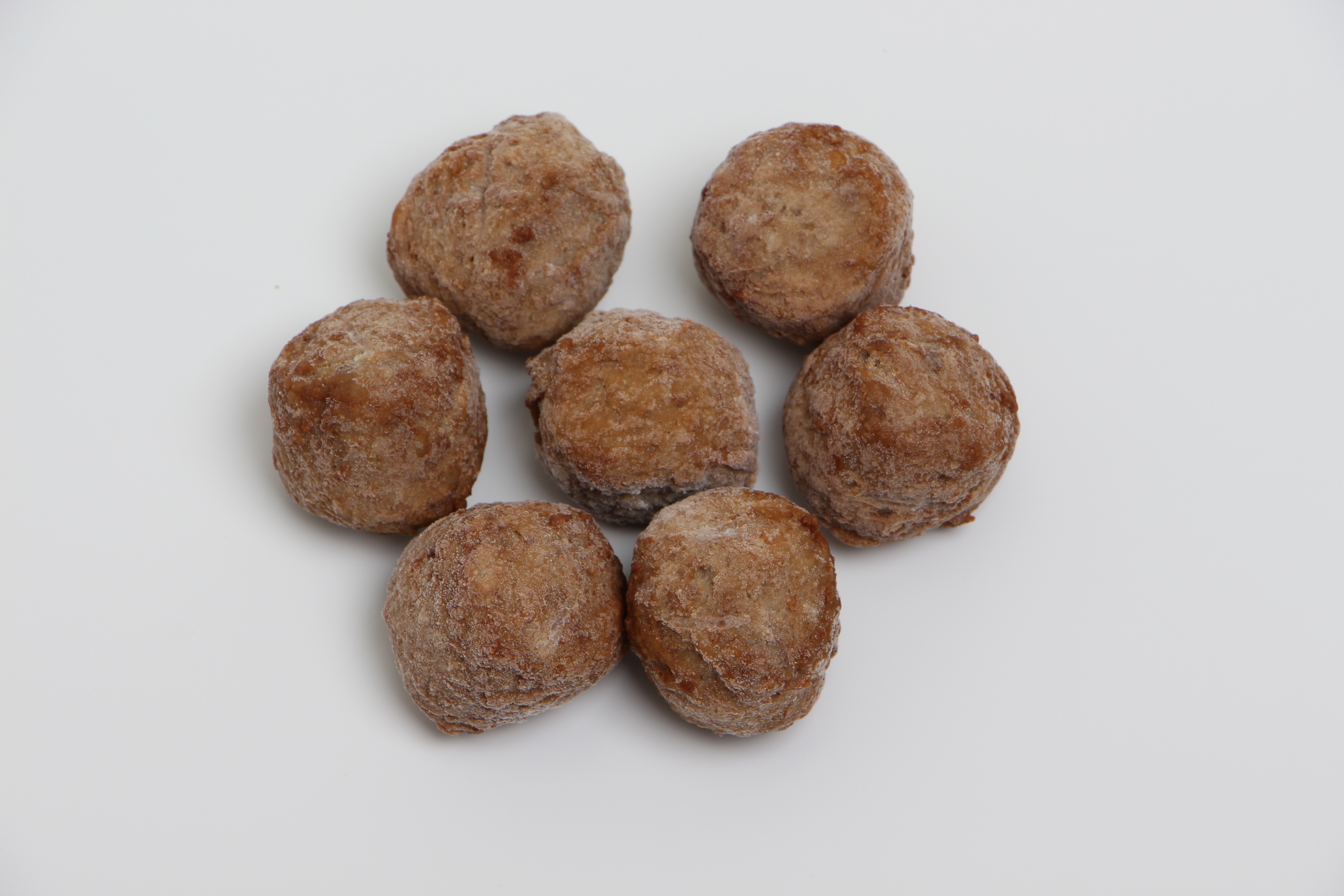Saftig frikadelle af kyllingekød, tilsat hvidløg/rosmarin krydderi-blanding.