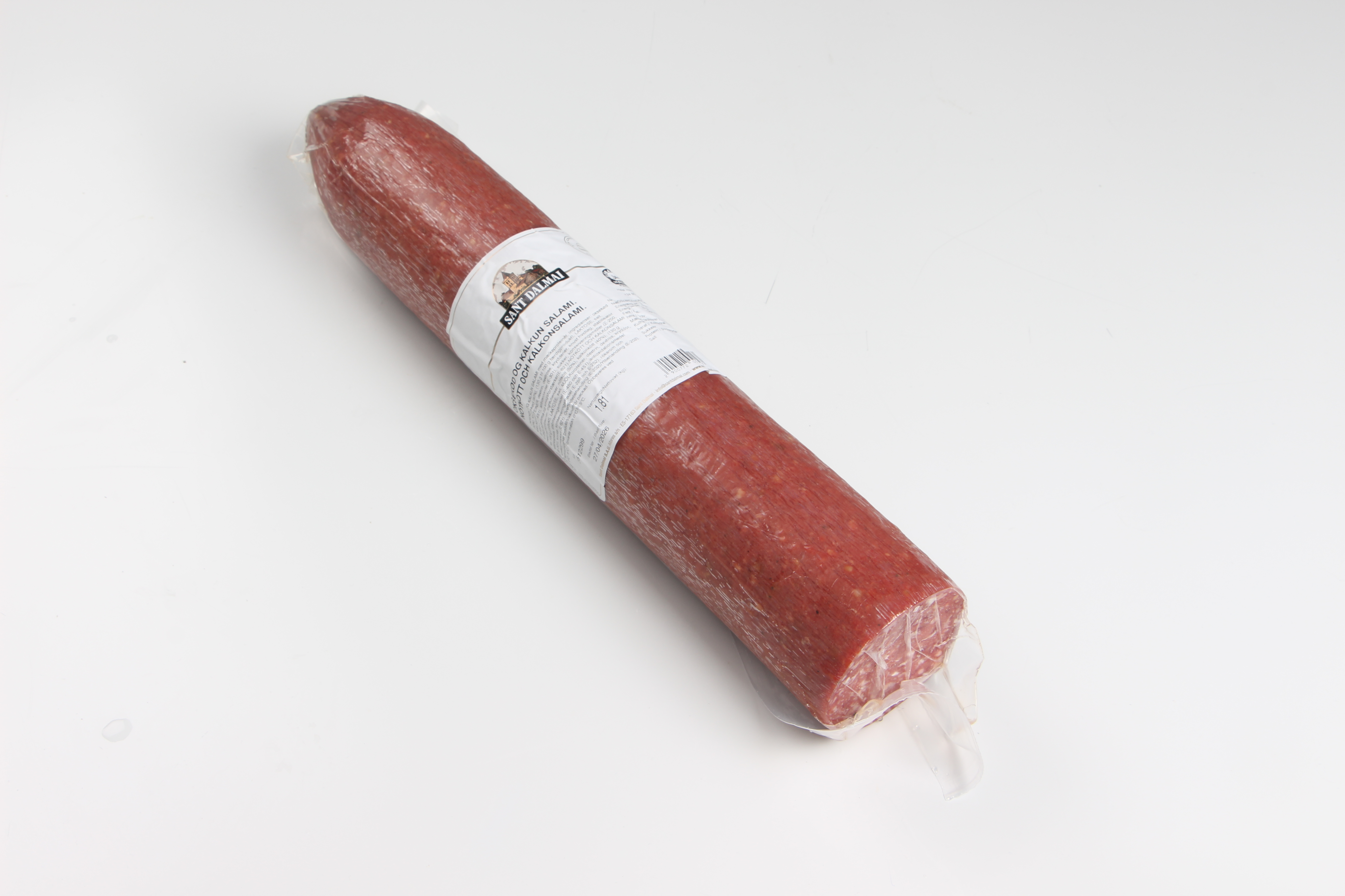 Salami af okse- og kalkun-kød. Vægt ca. 2 kg.